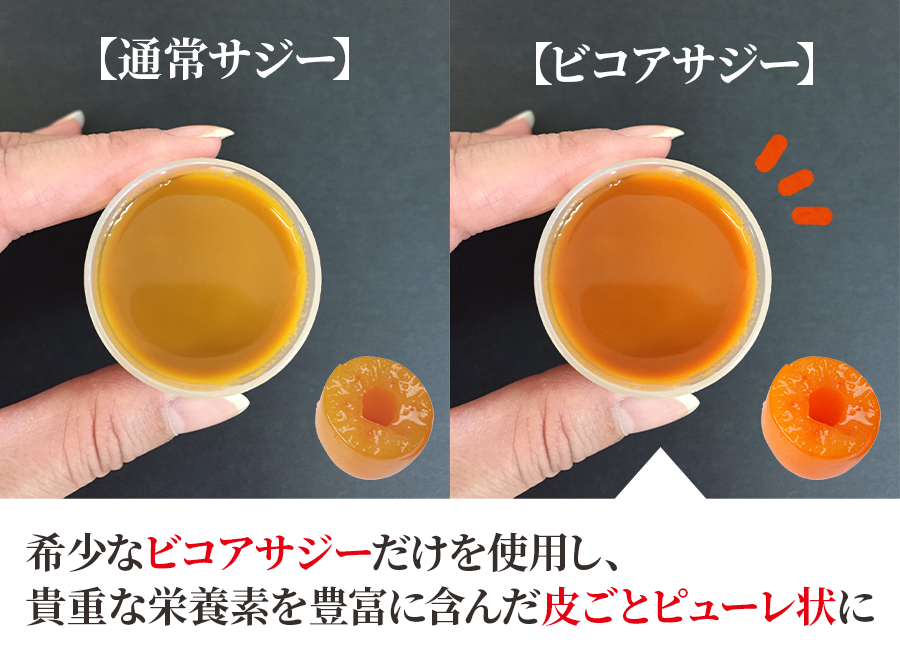豊潤サジーは、特に希少な“ビコアサジー”を皮ごとピューレ状にして使用。
