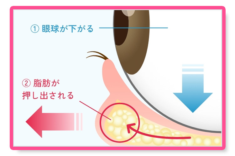 眼球が下がって脂肪が押し出されて